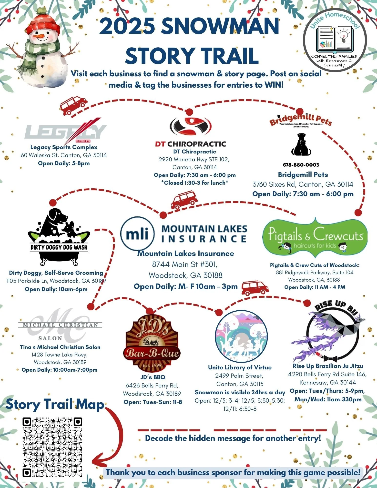 Step 2: Find the snowman at each business, collecting the Story Parts & snap a photo of the business, a product or something fun you discovered!