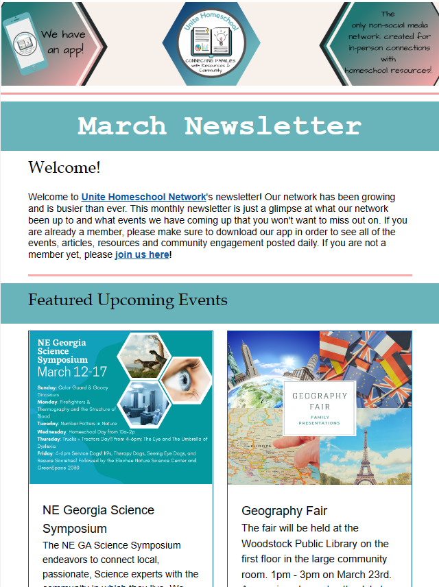 March 2023 Newsletter Feb 28 Written By Angela Pilcher Click the image to read the full newsletter. #UniteHomeschoolHomeschool eventshomeschool support Angela Pilcher